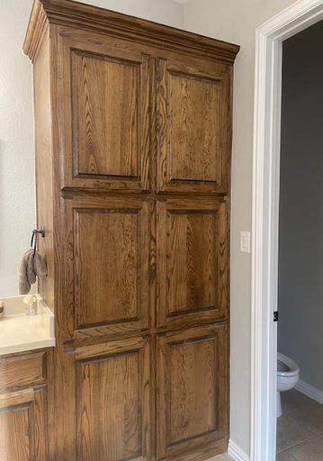 We gave this master bathroom a full renovation, bringing it from dark and dated to moody and modern with our clients' request for a modern luxe feel. For this husband and wife team, we found ways to mix modern, masculine, clean lines with soft, elegant finishes, complete with their colors of choice, green and black.